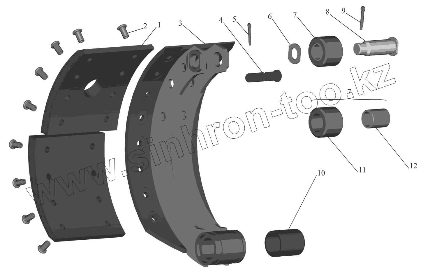 Каталог запасных частей к технике: МАЗ-437041 (Зубренок). Колодка тормоза с накладками