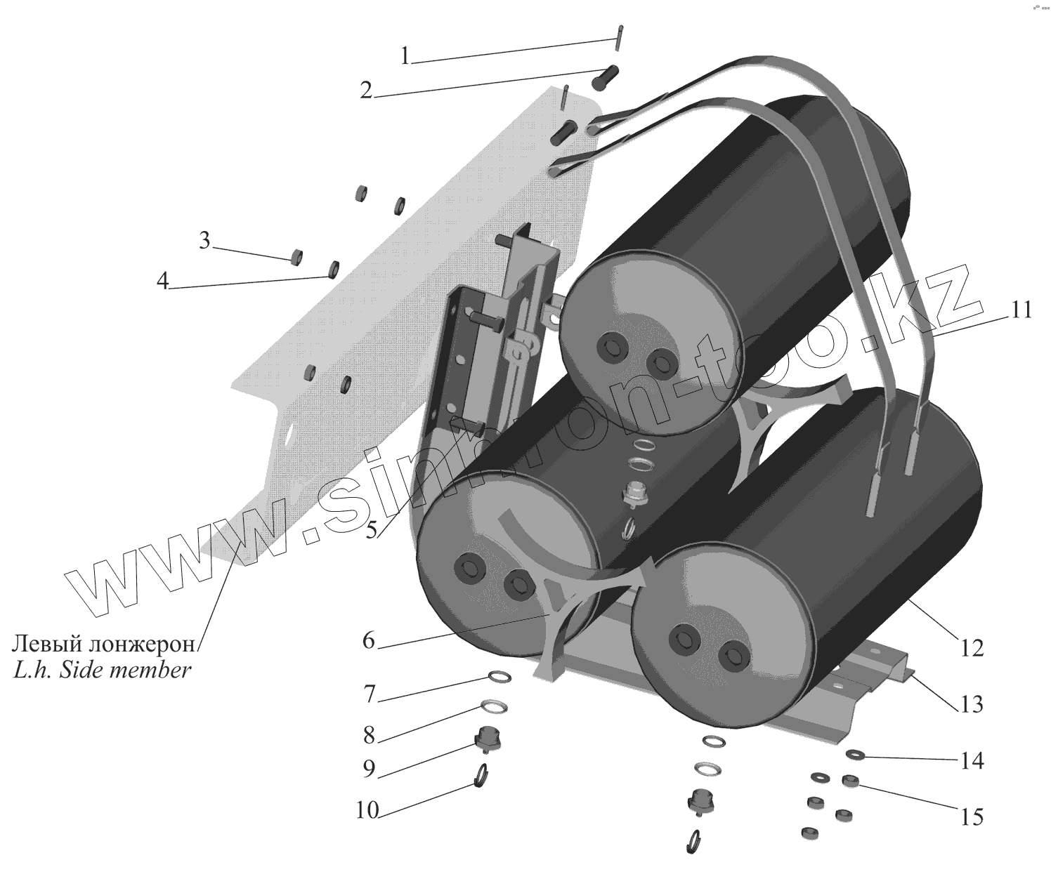 Каталог запасных частей к технике: МАЗ-437041 (Зубренок). Крепление ресиверов 4370-3513004
