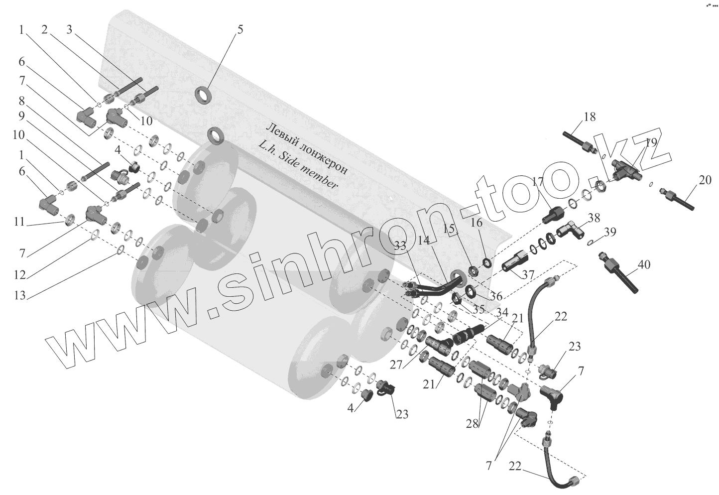 Каталог запасных частей к технике: МАЗ-437041 (Зубренок). Присоединительная арматура к ресиверам 4370-3513004