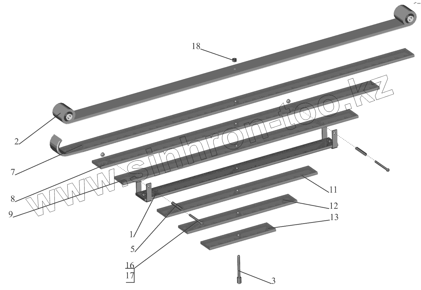 Каталог запасных частей к технике: МАЗ-437041 (Зубренок). Рессора передняя 4370-2902012-011