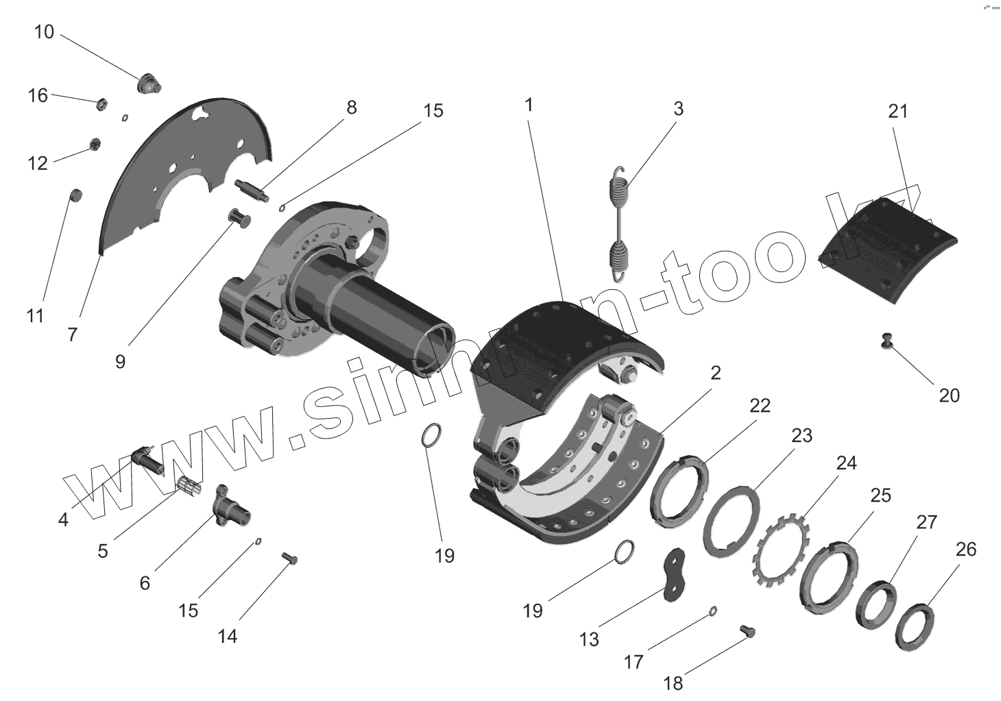 Каталог запасных частей к технике: МАЗ-437041 (Зубренок). Тормоз заднего колеса