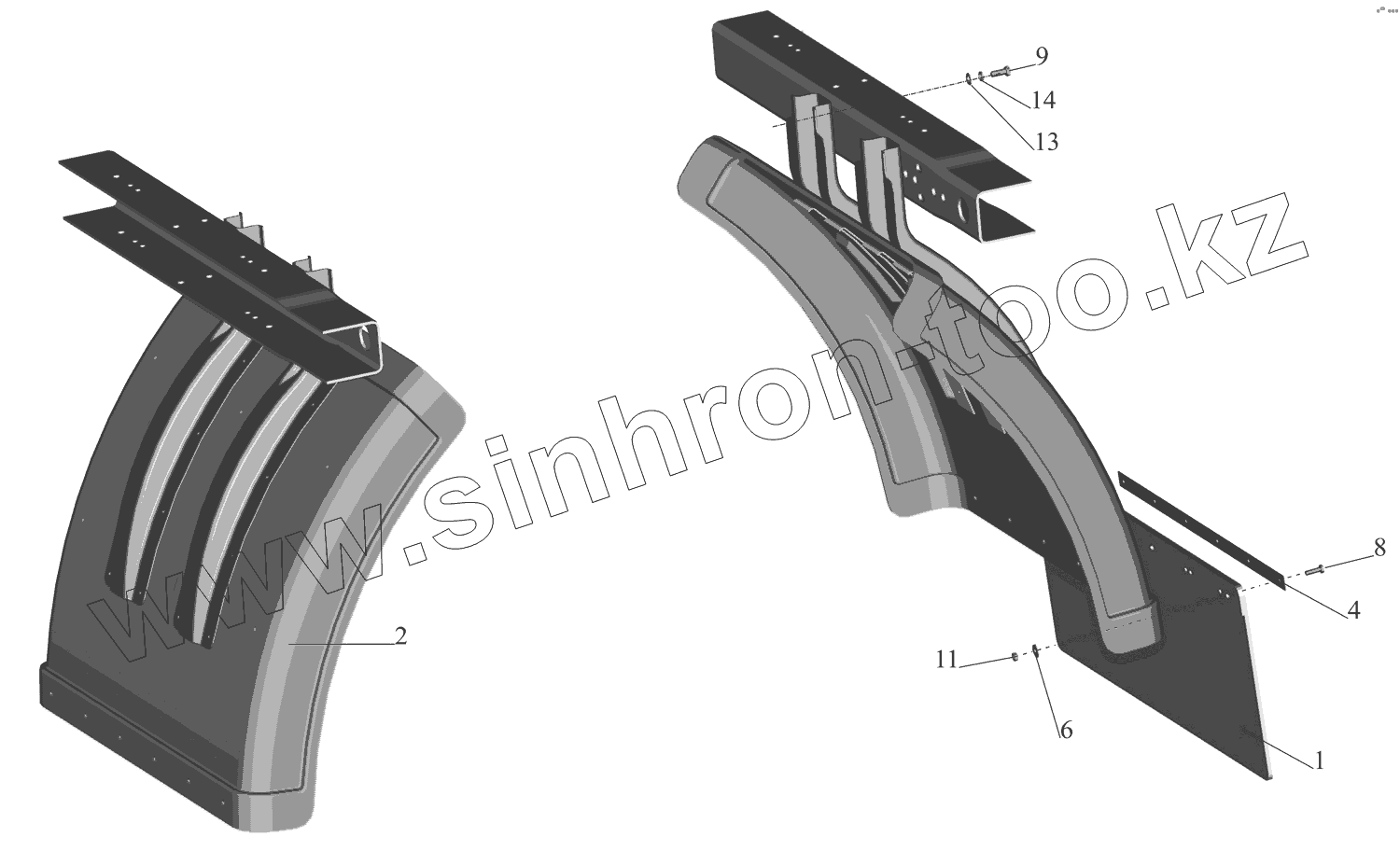 Каталог запасных частей к технике: МАЗ-437041 (Зубренок). Установка брызговиков 4370-8500048-020