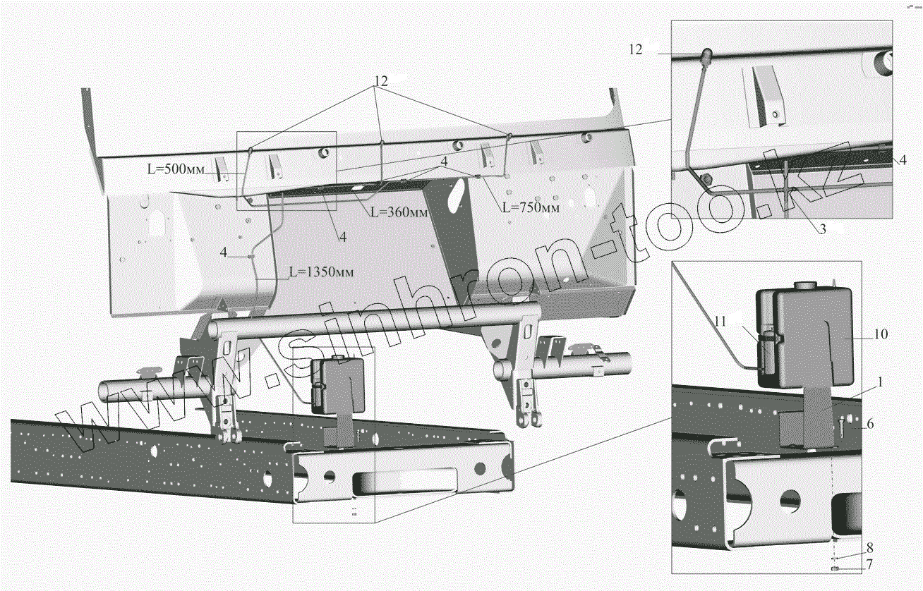 Каталог запасных частей к технике: МАЗ-437041 (Зубренок). Установка омывателя 4370-5200008-010
