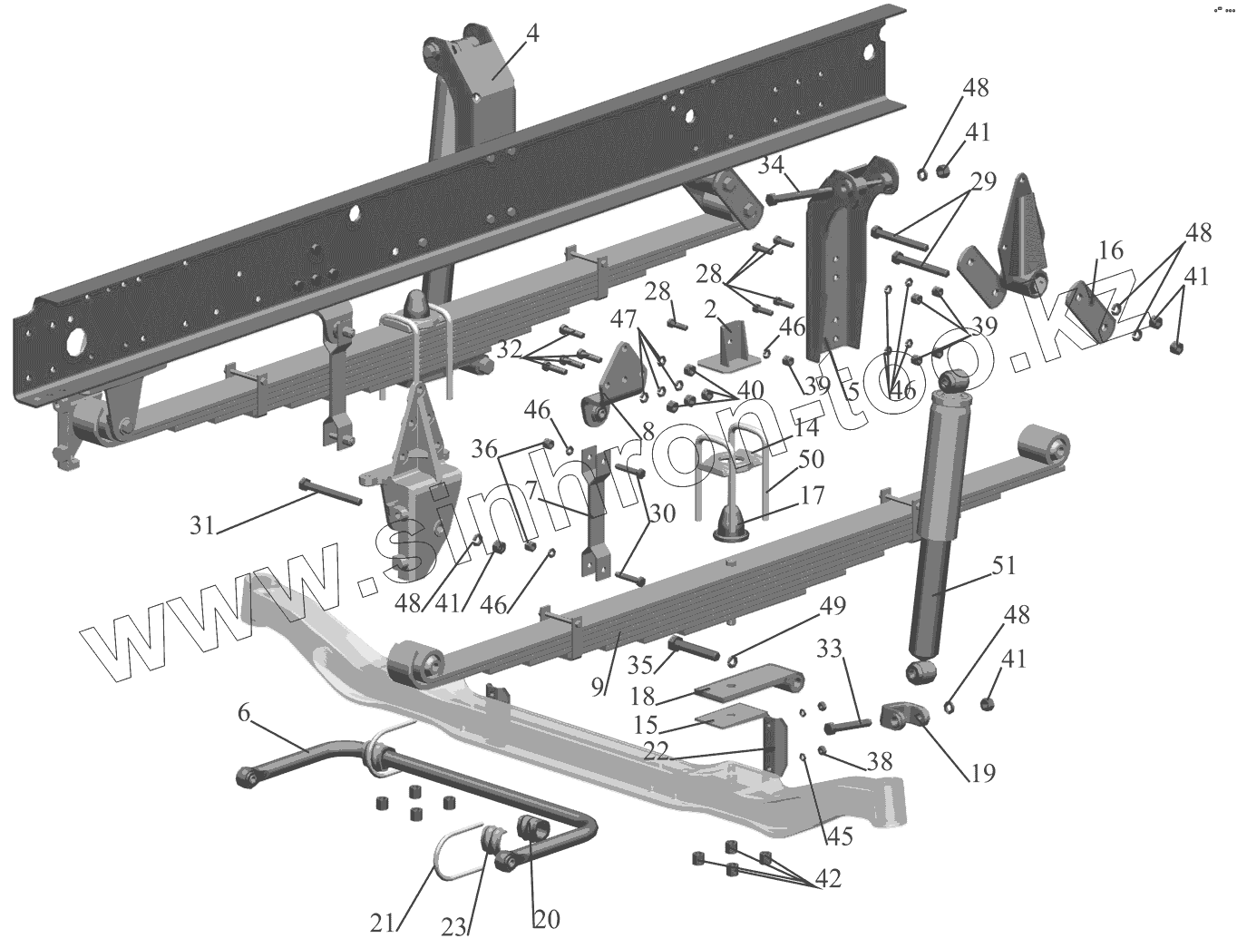 Каталог запасных частей к технике: МАЗ-437041 (Зубренок). Установка подвески передней 4370-2900001-011