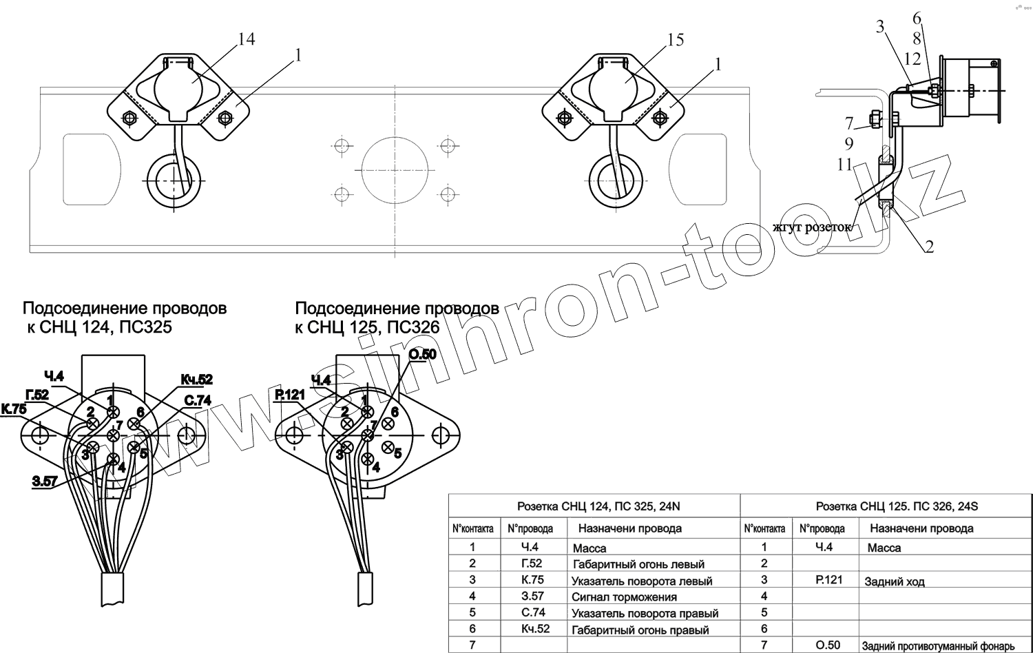 Каталог запасных частей к технике: МАЗ-437041 (Зубренок). Установка штепсельных розеток 4370741-3700015-700