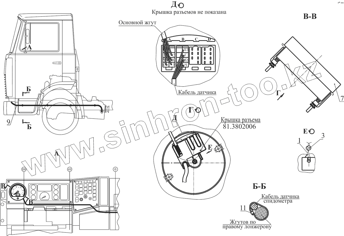 Каталог запасных частей к технике: МАЗ-437041 (Зубренок). Установка спидометра 437041-3800004
