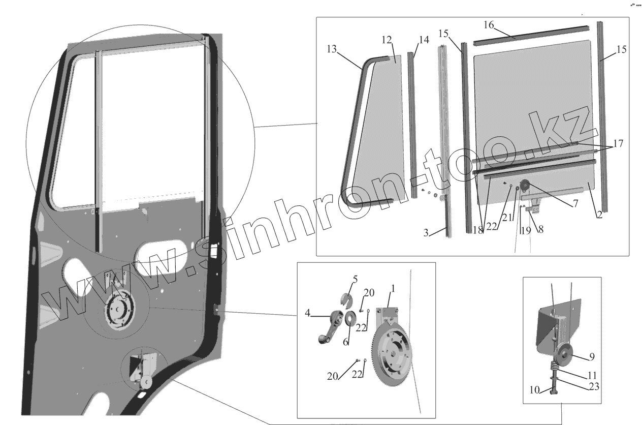 Каталог запасных частей к технике: МАЗ-437041 (Зубренок). Установка стеклоподъемника и ручки