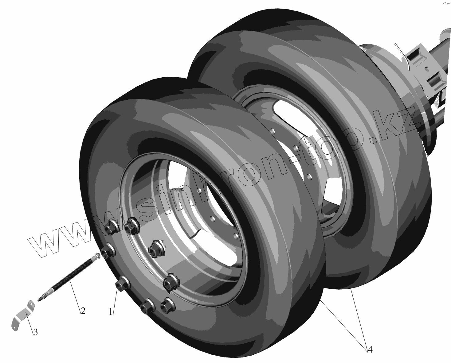 Каталог запасных частей к технике: МАЗ-437041 (Зубренок). Установка задних колес 457041-3100002