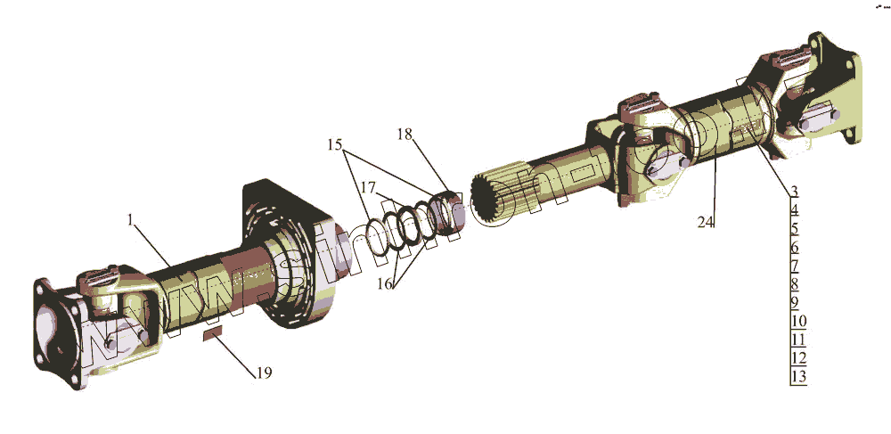Каталог запасных частей к технике: МАЗ-437043 (Зубренок). Карданная передача 4370-2201006-010