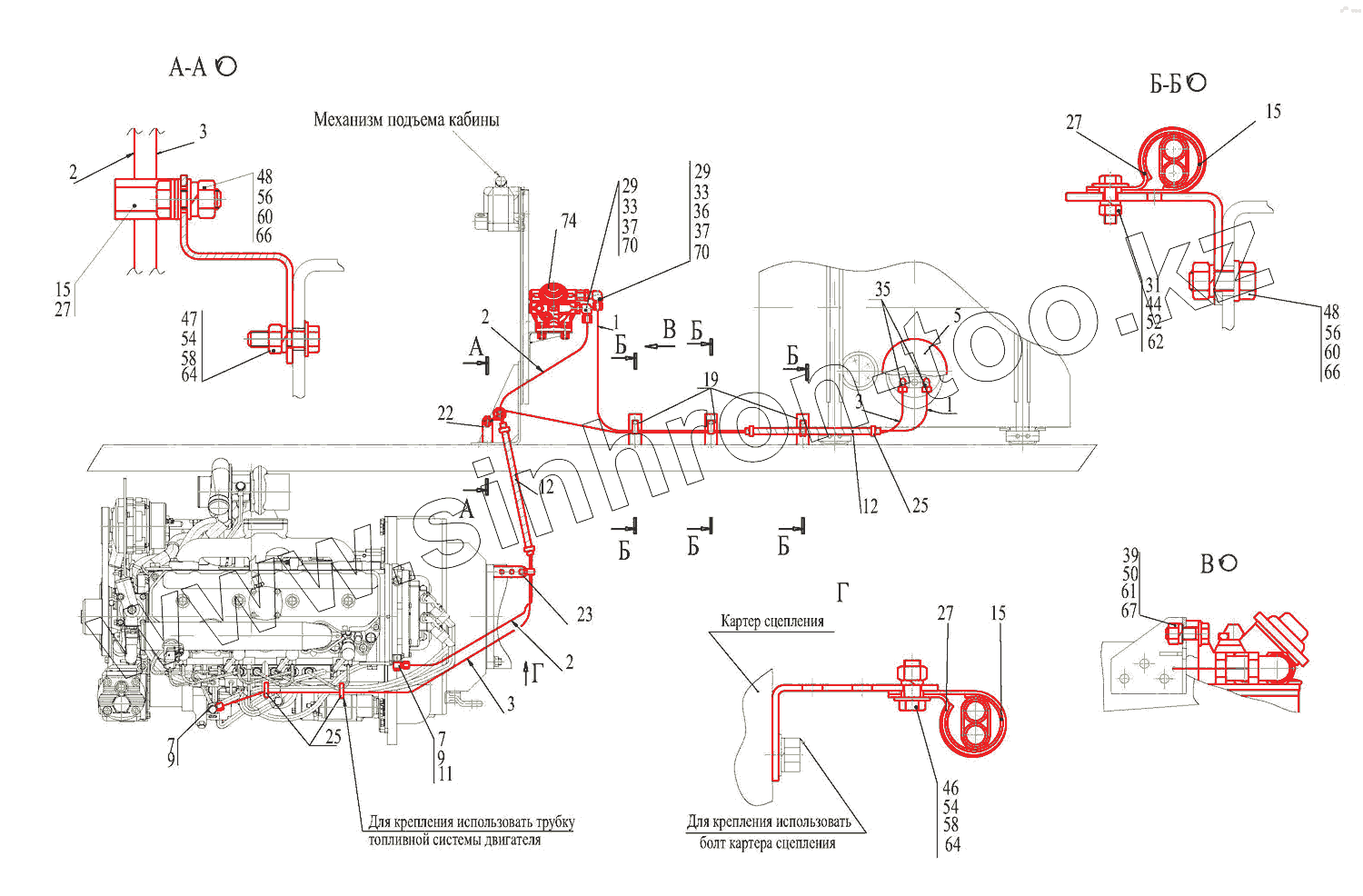 Каталог запасных частей к технике: МАЗ-437043 (Зубренок). Крепление топливопроводов 437143-1104002-010
