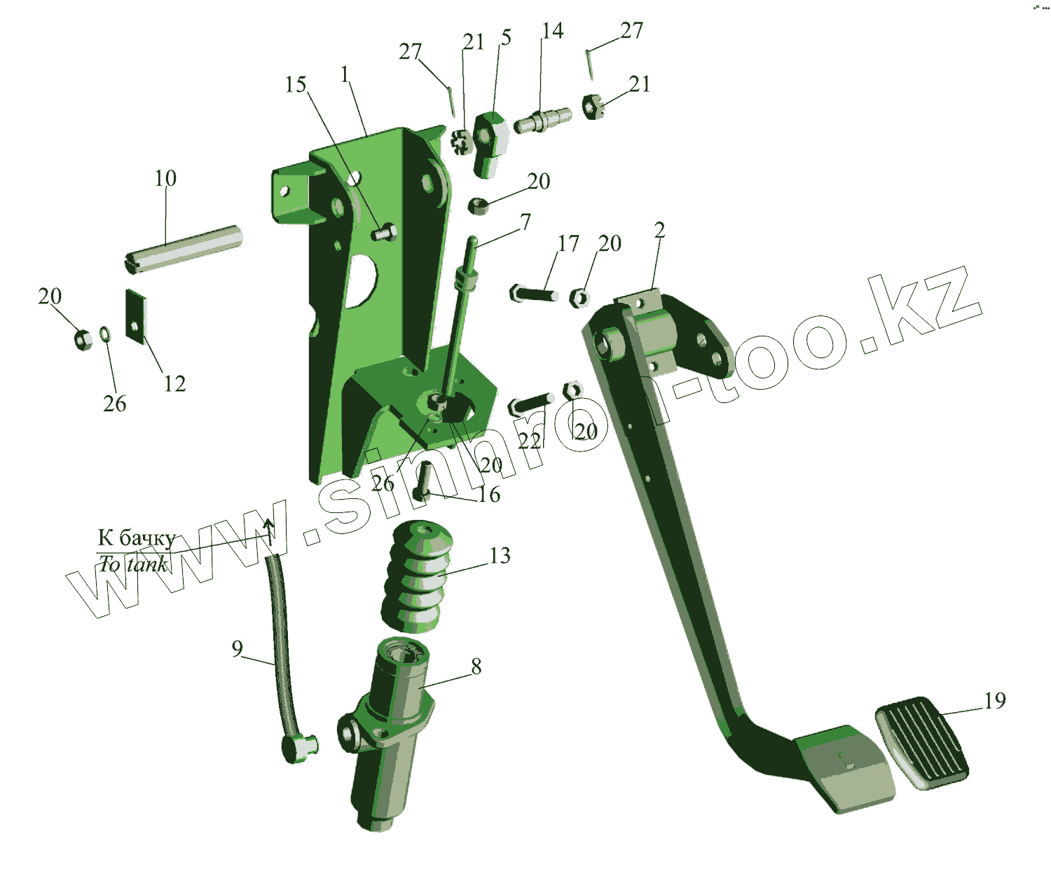 Каталог запасных частей к технике: МАЗ-437043 (Зубренок). Основание педали 64221-1602004-010