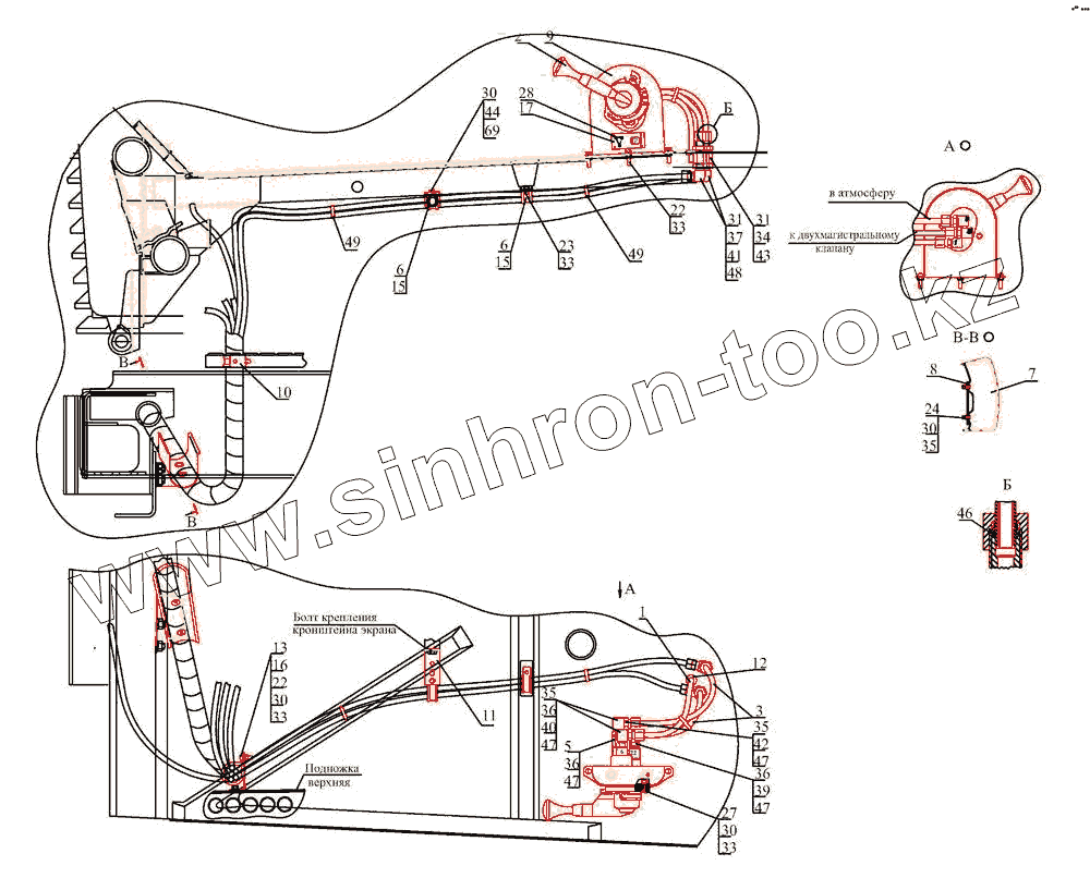 Каталог запасных частей к технике: МАЗ-437043 (Зубренок). Привод стояночного тормоза 438041-3537004