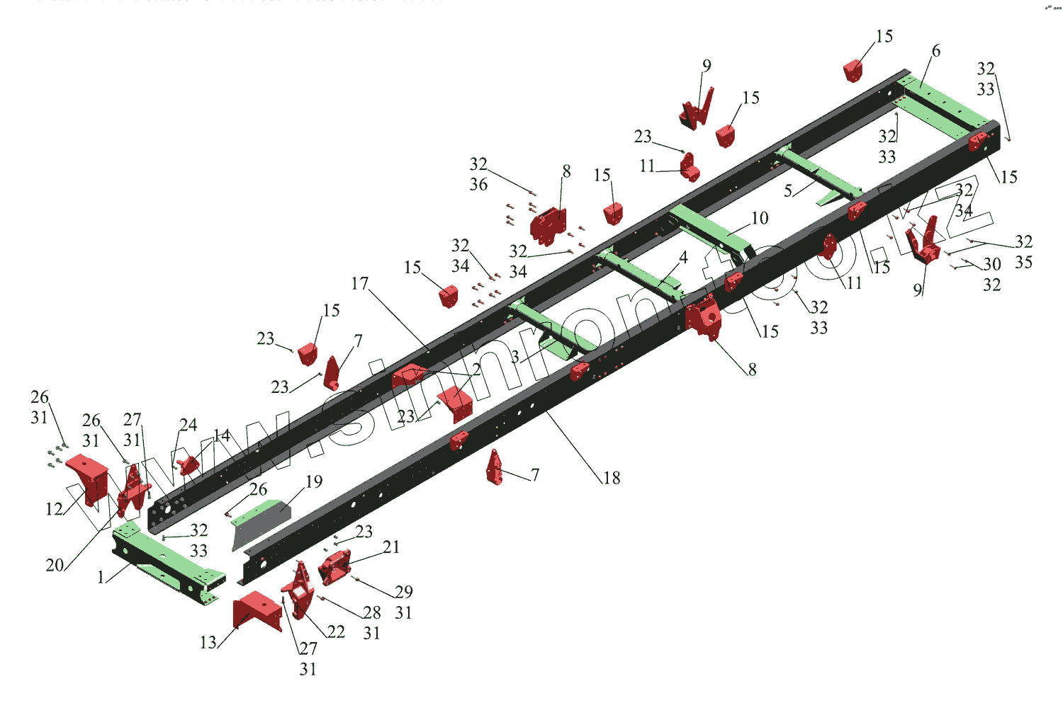 Каталог запасных частей к технике: МАЗ-437043 (Зубренок). Рама 437040-2801002-010