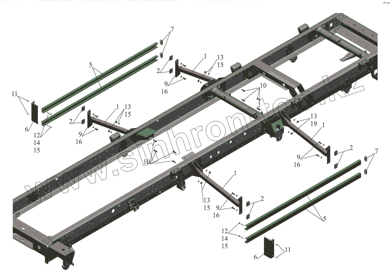 Каталог запасных частей к технике: МАЗ-437043 (Зубренок). Установка бокового ограждения 4370-2800040-020