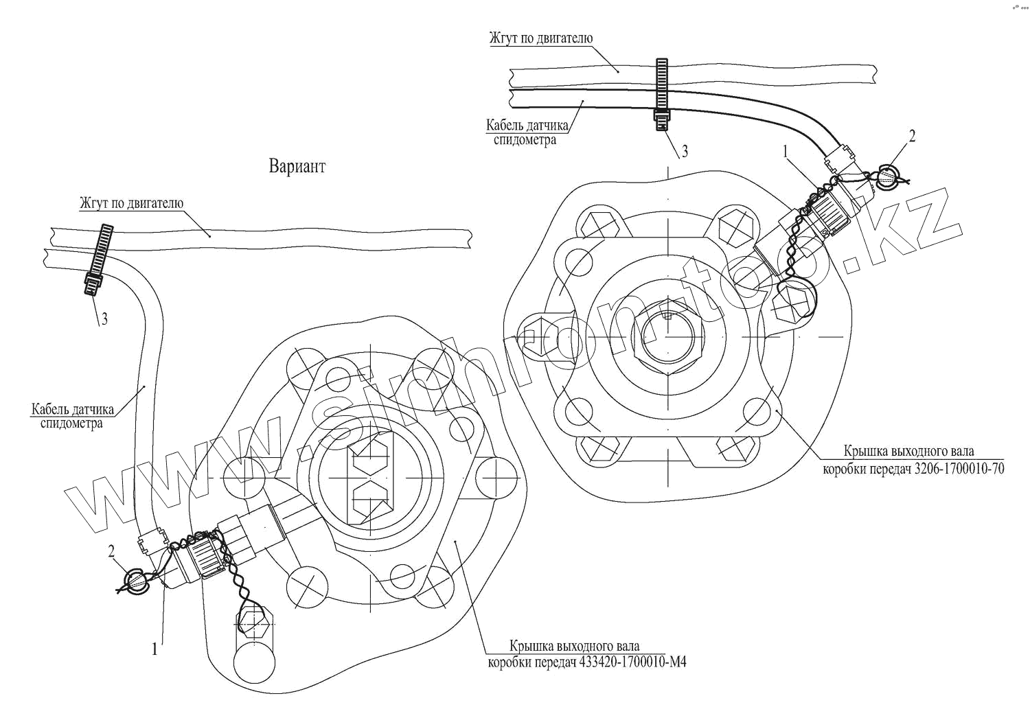 Каталог запасных частей к технике: МАЗ-437043 (Зубренок). Установка датчика спидометра 437041-3800006-002