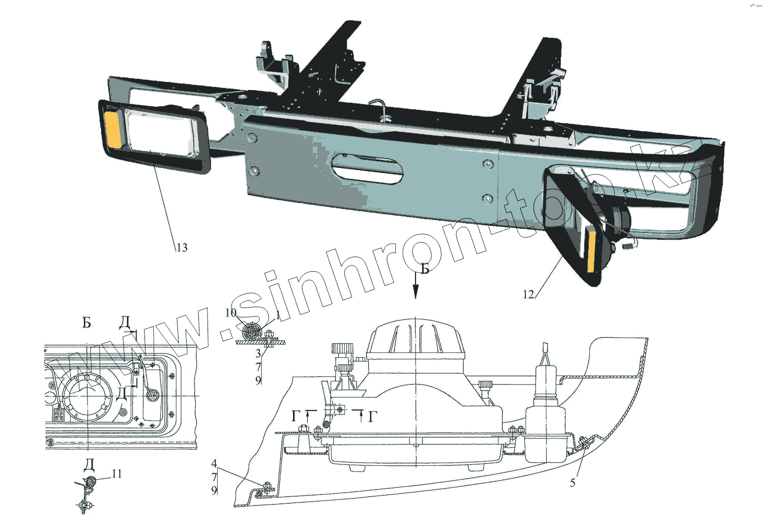 Каталог запасных частей к технике: МАЗ-437043 (Зубренок). Установка фар 437040-3700006, (-700)
