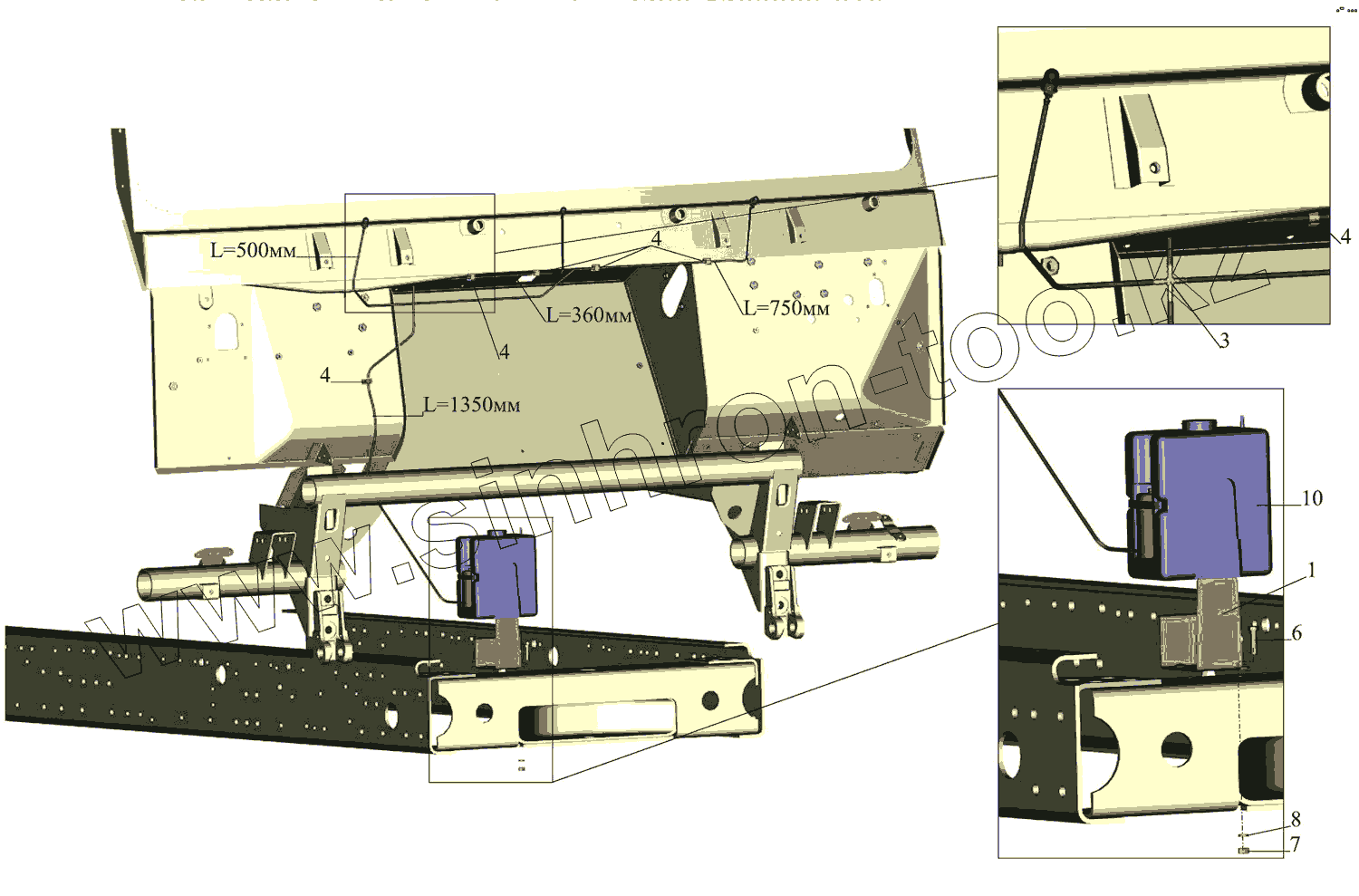 Каталог запасных частей к технике: МАЗ-437043 (Зубренок). Установка омывателя 4370-5200008-010