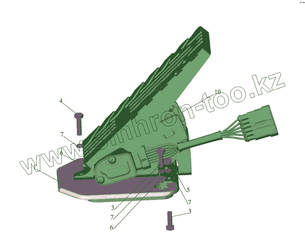 Каталог запасных частей к технике: МАЗ-437043 (Зубренок). Установка педали управления двигателем 437043-1108002
