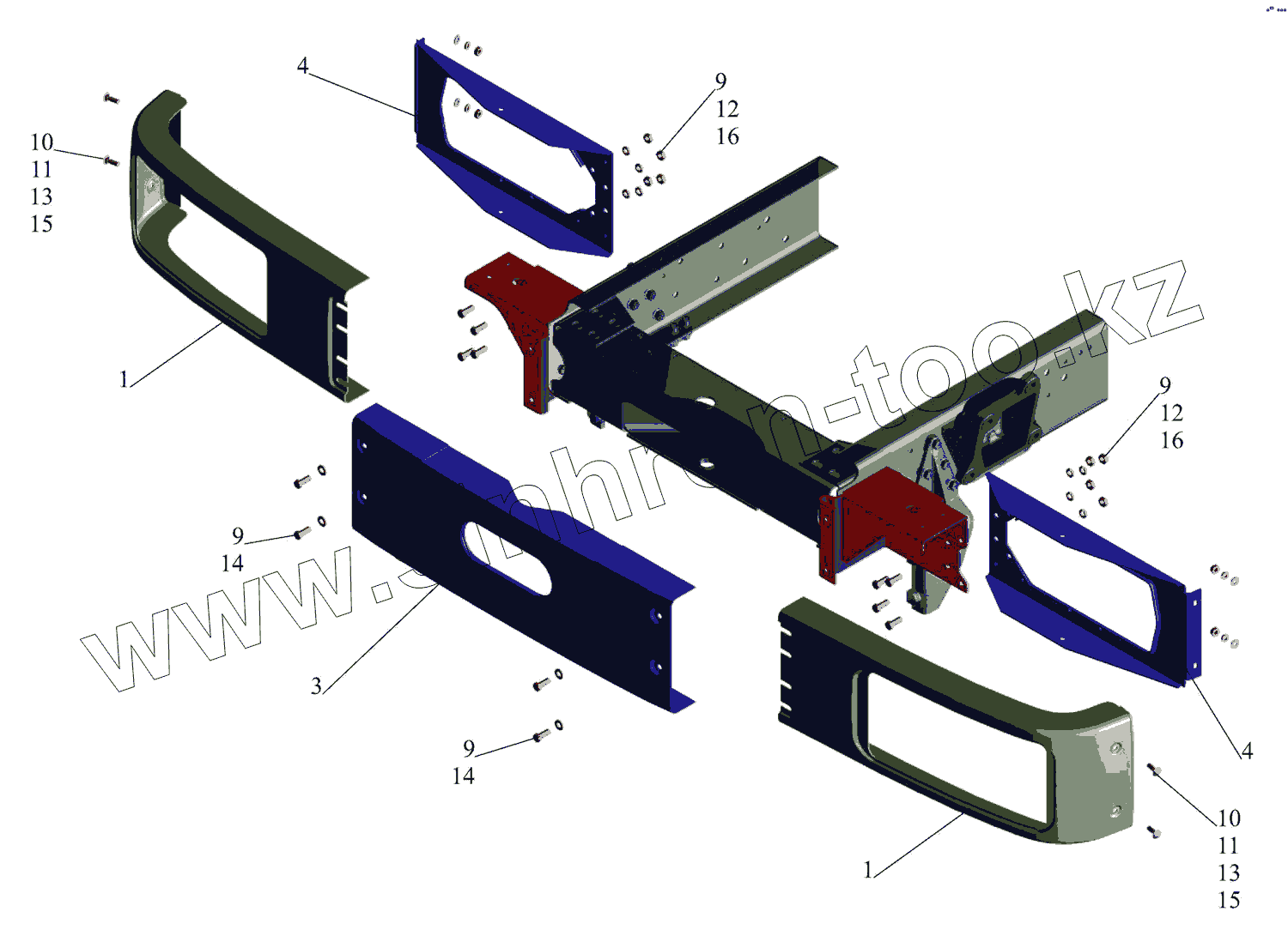 Каталог запасных частей к технике: МАЗ-437043 (Зубренок). Установка переднего бампера 4370-2803006