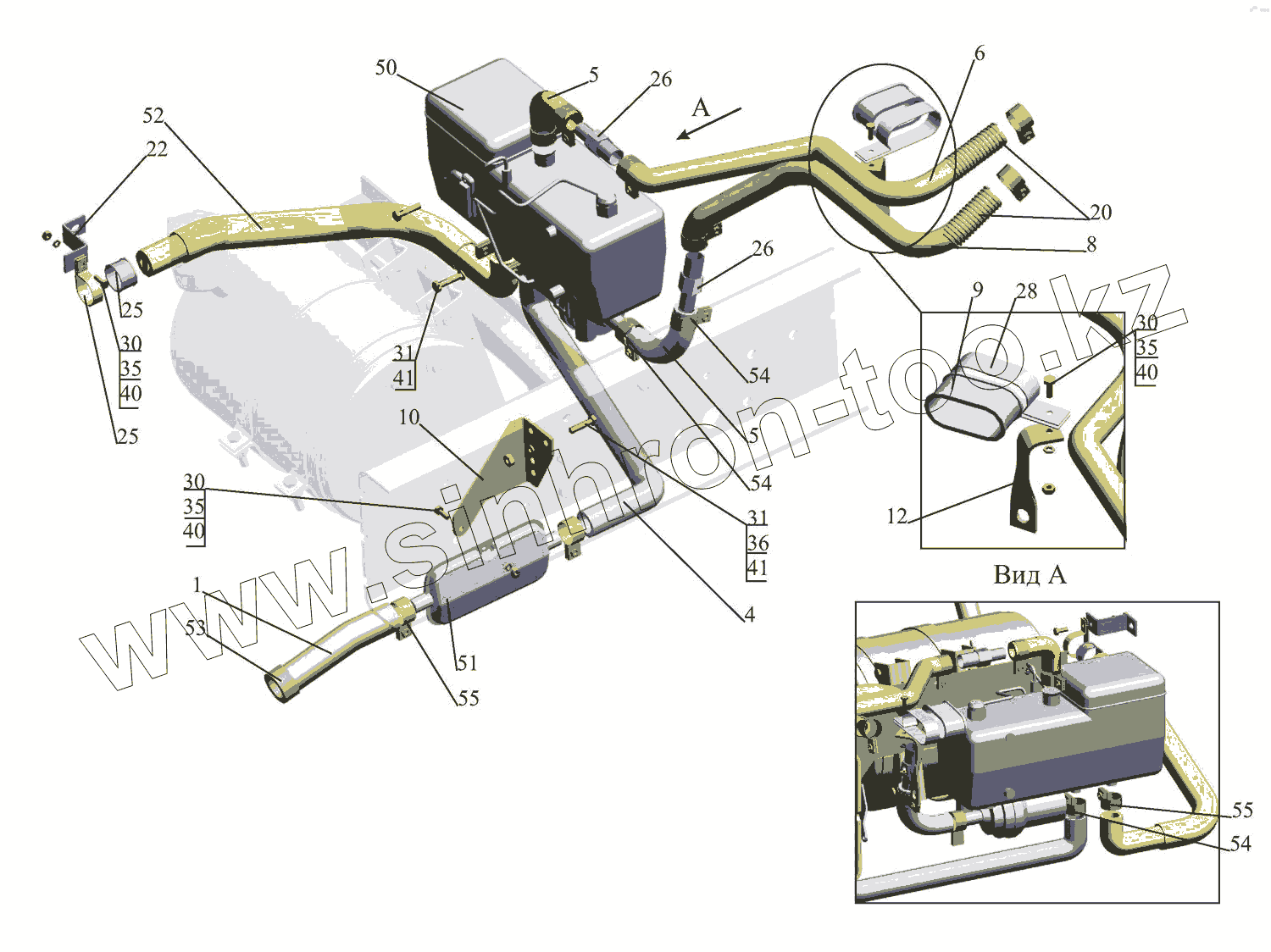 Каталог запасных частей к технике: МАЗ-437043 (Зубренок). Установка подогревателя 437041-1015001-001
