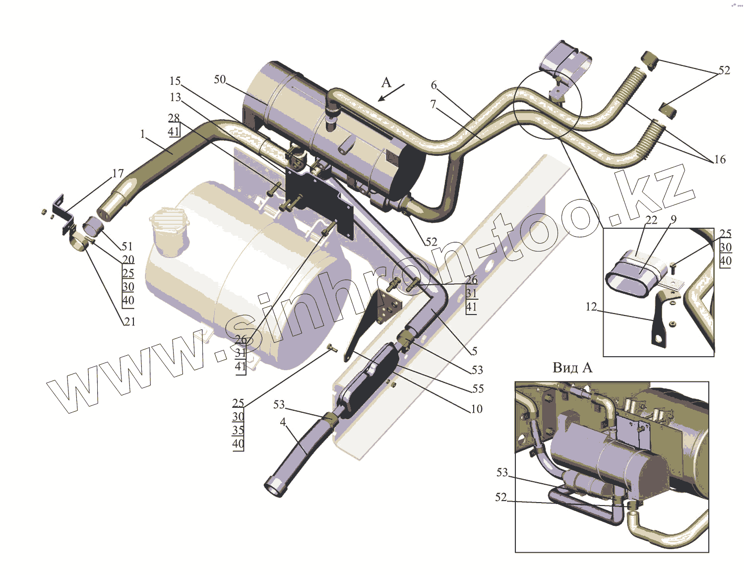 Каталог запасных частей к технике: МАЗ-437043 (Зубренок). Установка подогревателя 437041-1015001-011