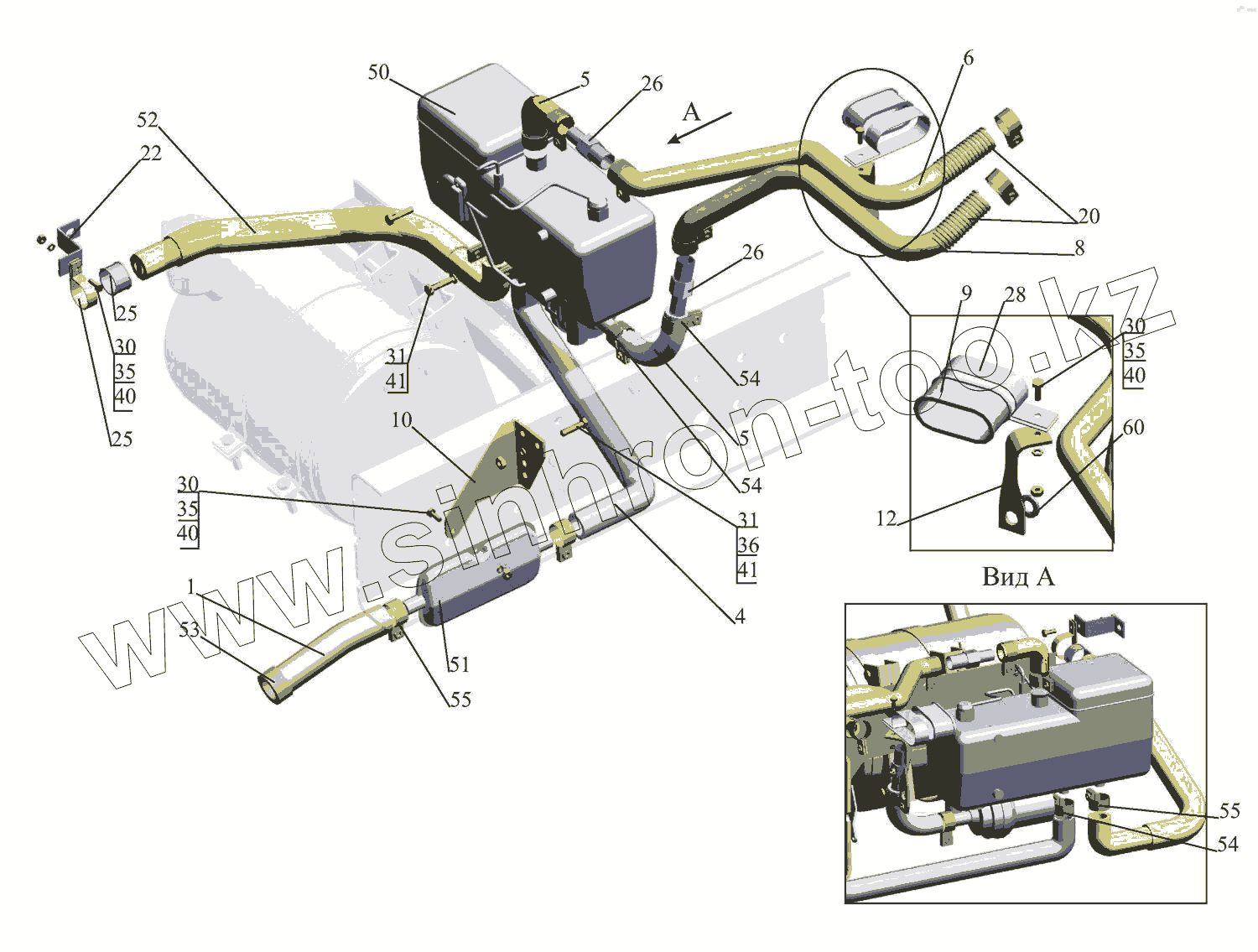 Каталог запасных частей к технике: МАЗ-437043 (Зубренок). Установка подогревателя 437041-1015001-021