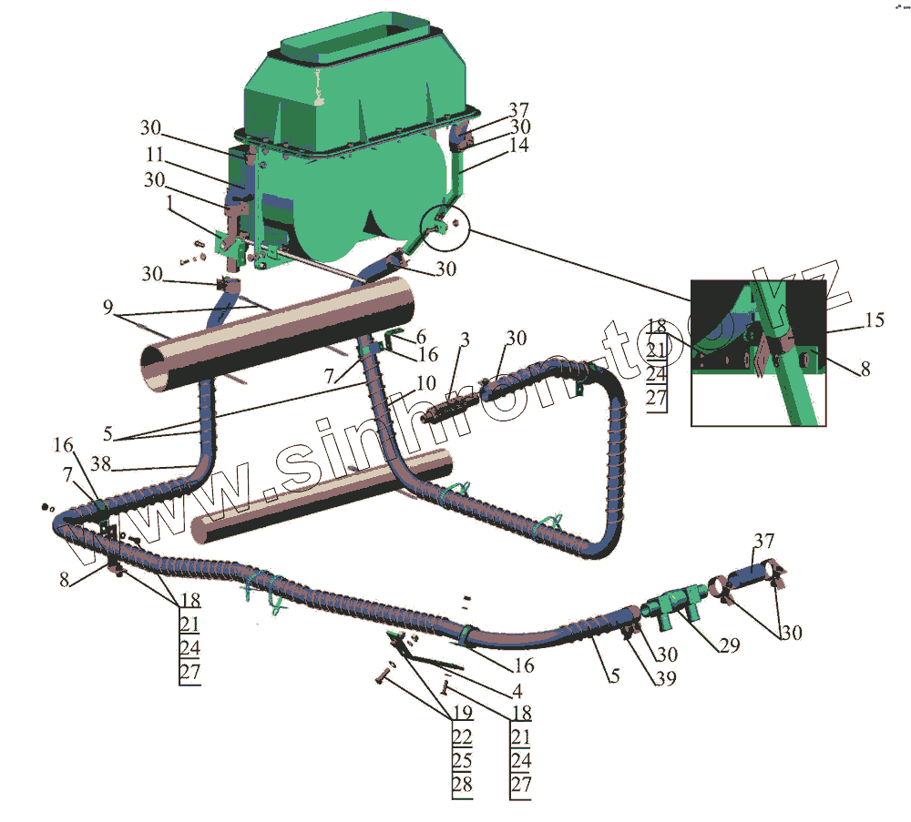 Каталог запасных частей к технике: МАЗ-437043 (Зубренок). Установка шлангов отопителя 437040-8100006-010