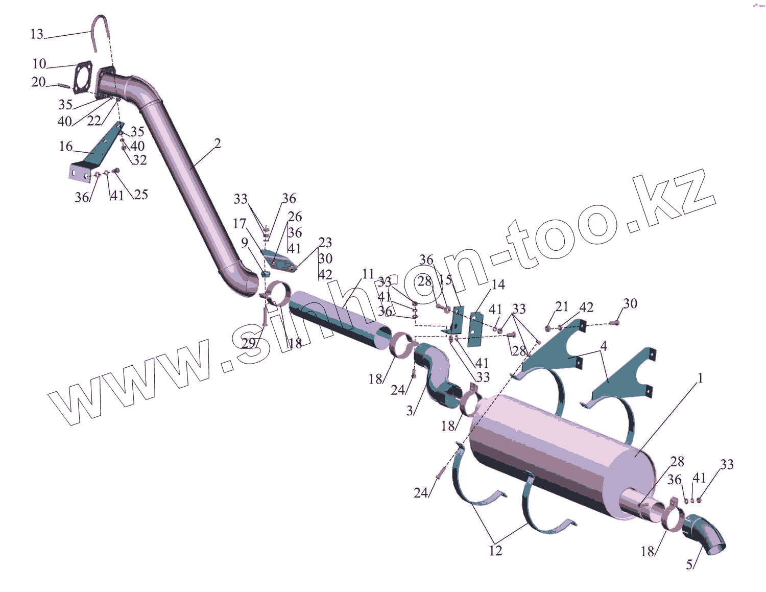 Каталог запасных частей к технике: МАЗ-437043 (Зубренок). Установка системы выпуска газов 437043-1200001