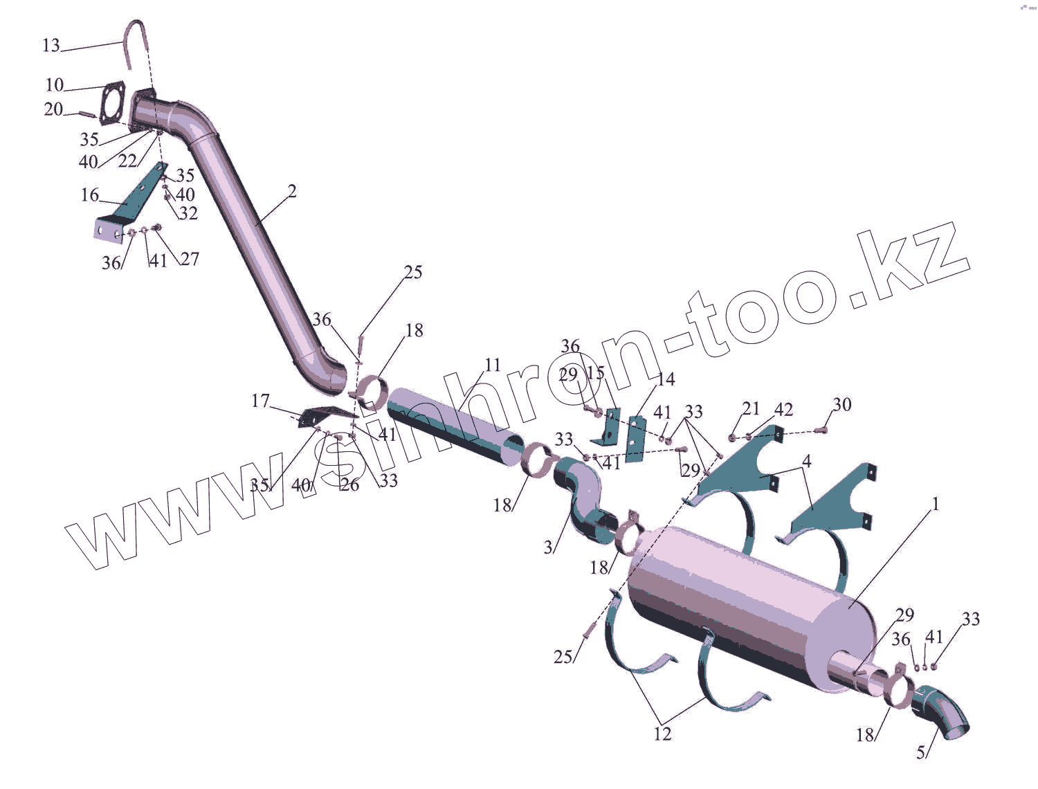 Каталог запасных частей к технике: МАЗ-437043 (Зубренок). Установка системы выпуска газов 437143-1200001