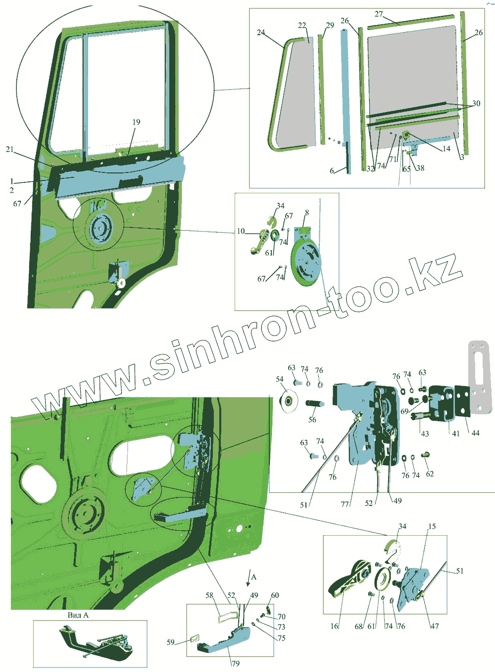 Каталог запасных частей к технике: МАЗ-437043 (Зубренок). Установка стеклоподъемника и ручки стеклоподъемника