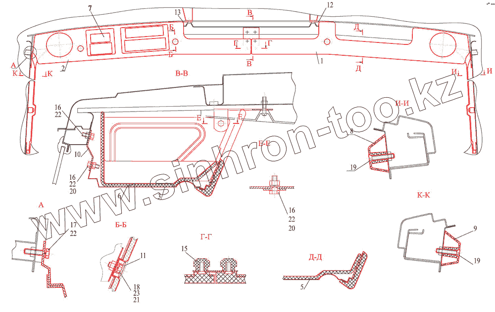 Каталог запасных частей к технике: МАЗ-437043 (Зубренок). Установка вещевой полки 5551-8200034