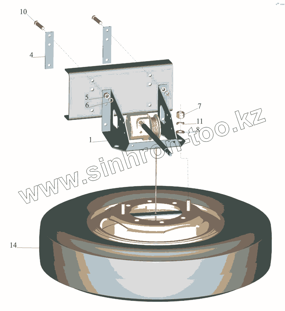 Каталог запасных частей к технике: МАЗ-437043 (Зубренок). Установка запасного колеса 437041-3100001