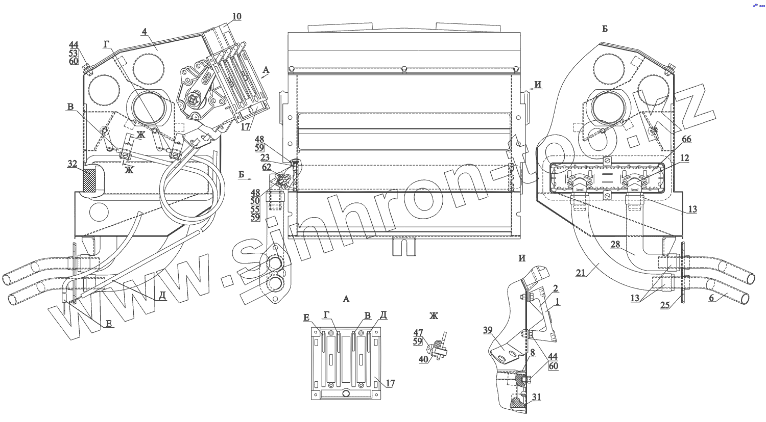 Каталог запасных частей к технике: МАЗ-437130 (Зубренок). Блок радиатора 5440-8101010-010