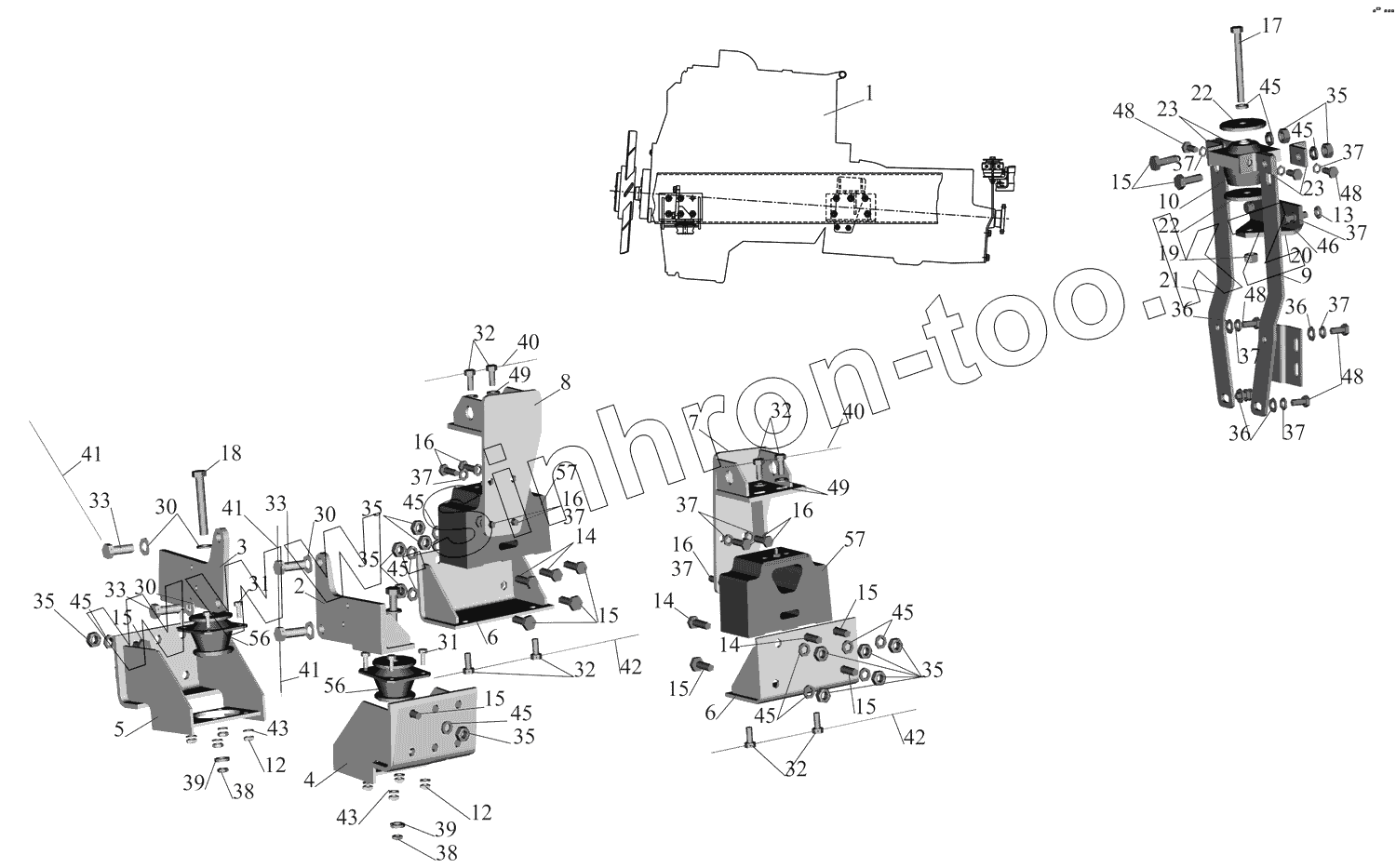 Каталог запасных частей к технике: МАЗ-437130 (Зубренок). Крепление двигателя 437030-1001002