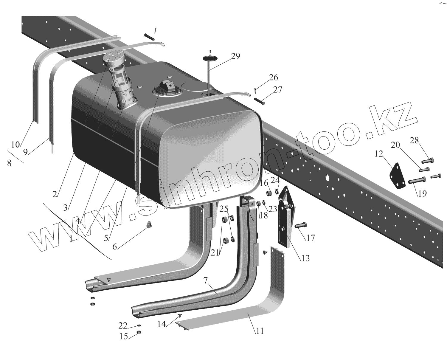 Каталог запасных частей к технике: МАЗ-437130 (Зубренок). Крепление топливного бака 437137-1101002
