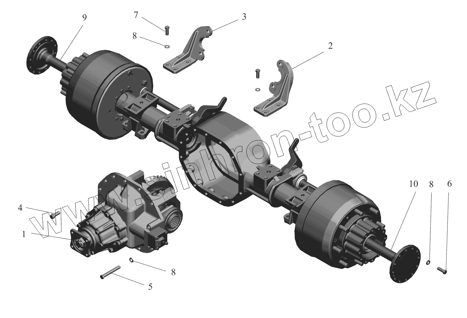 Каталог запасных частей к технике: МАЗ-437130 (Зубренок). Мост задний. Установка редуктора