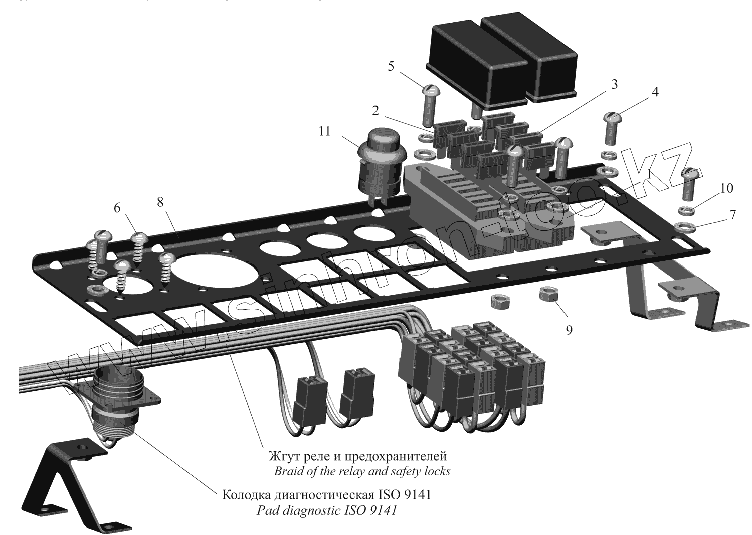 Каталог запасных частей к технике: МАЗ-437130 (Зубренок). Панель реле и предохранителей
