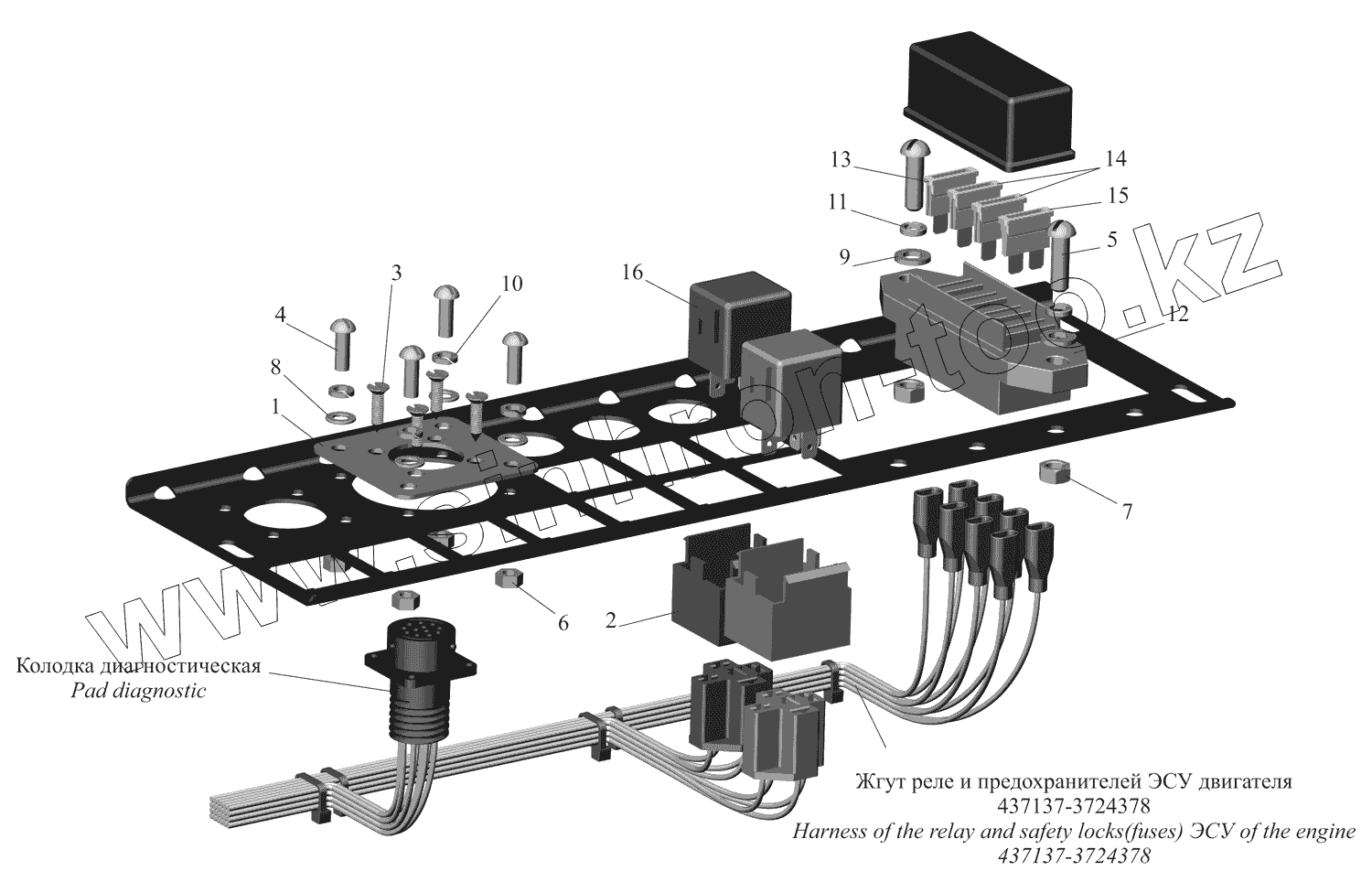 Каталог запасных частей к технике: МАЗ-437130 (Зубренок). Панель реле и предохранителей ЭСУ двигателя