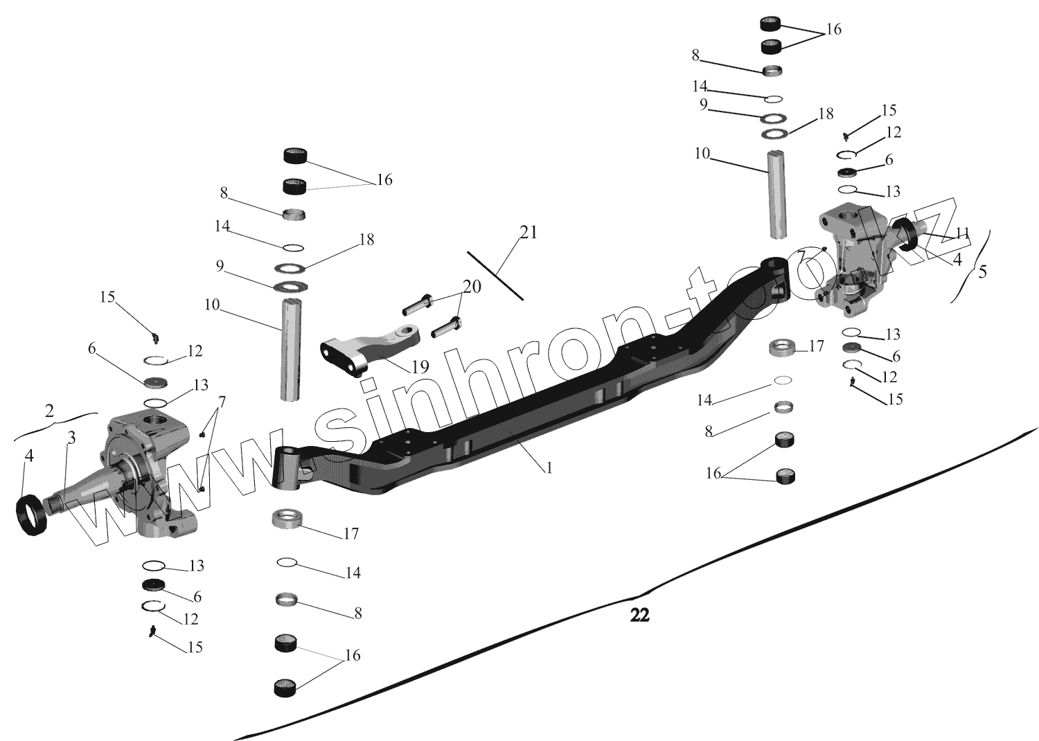 Каталог запасных частей к технике: МАЗ-437130 (Зубренок). Передняя ось 4370-3000015