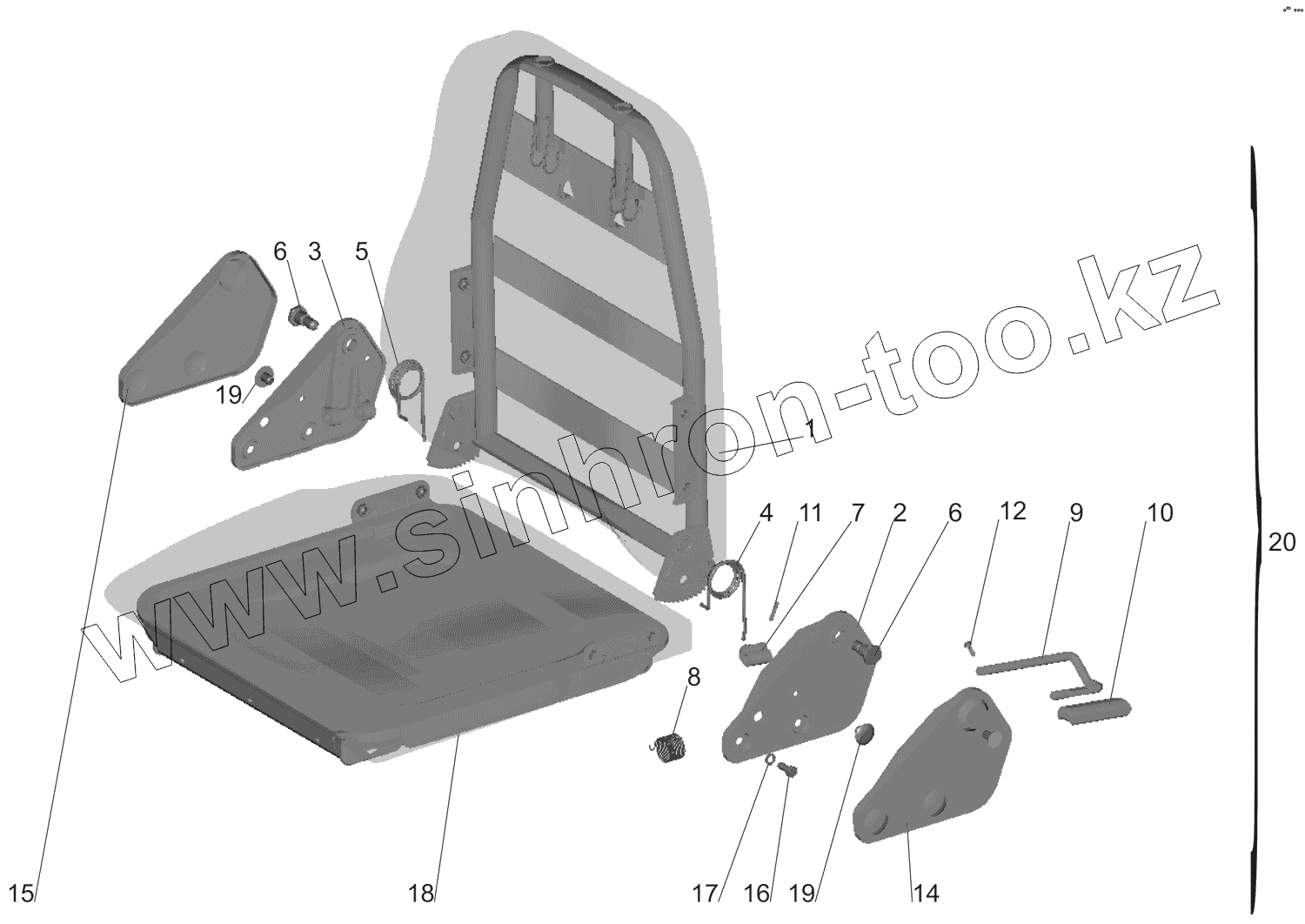 Каталог запасных частей к технике: МАЗ-437130 (Зубренок). Подушка и спинка сидения