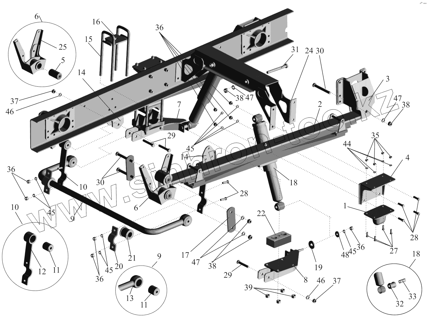 Каталог запасных частей к технике: МАЗ-437130 (Зубренок). Подвеска задняя 4370-2900002