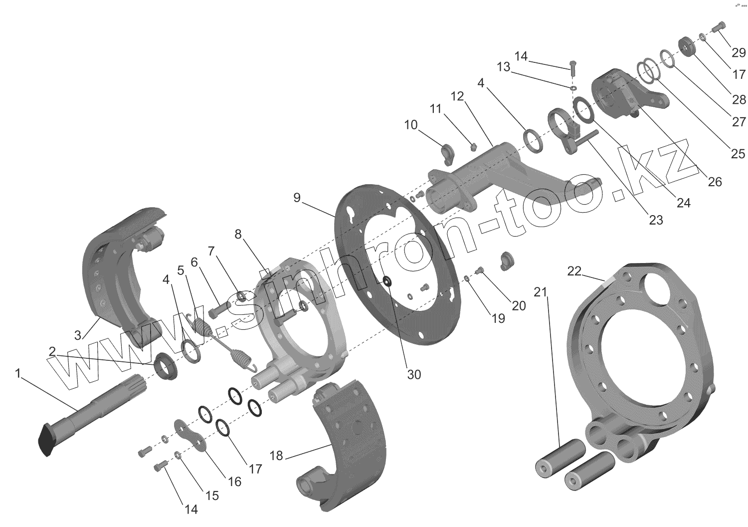 Каталог запасных частей к технике: МАЗ-437130 (Зубренок). Тормозной механизм передней оси