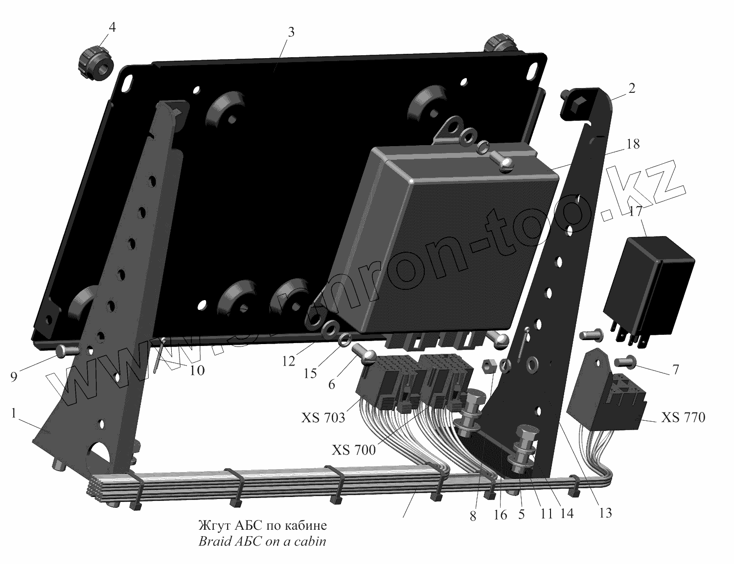 Каталог запасных частей к технике: МАЗ-437130 (Зубренок). Установка электронного блока АБС