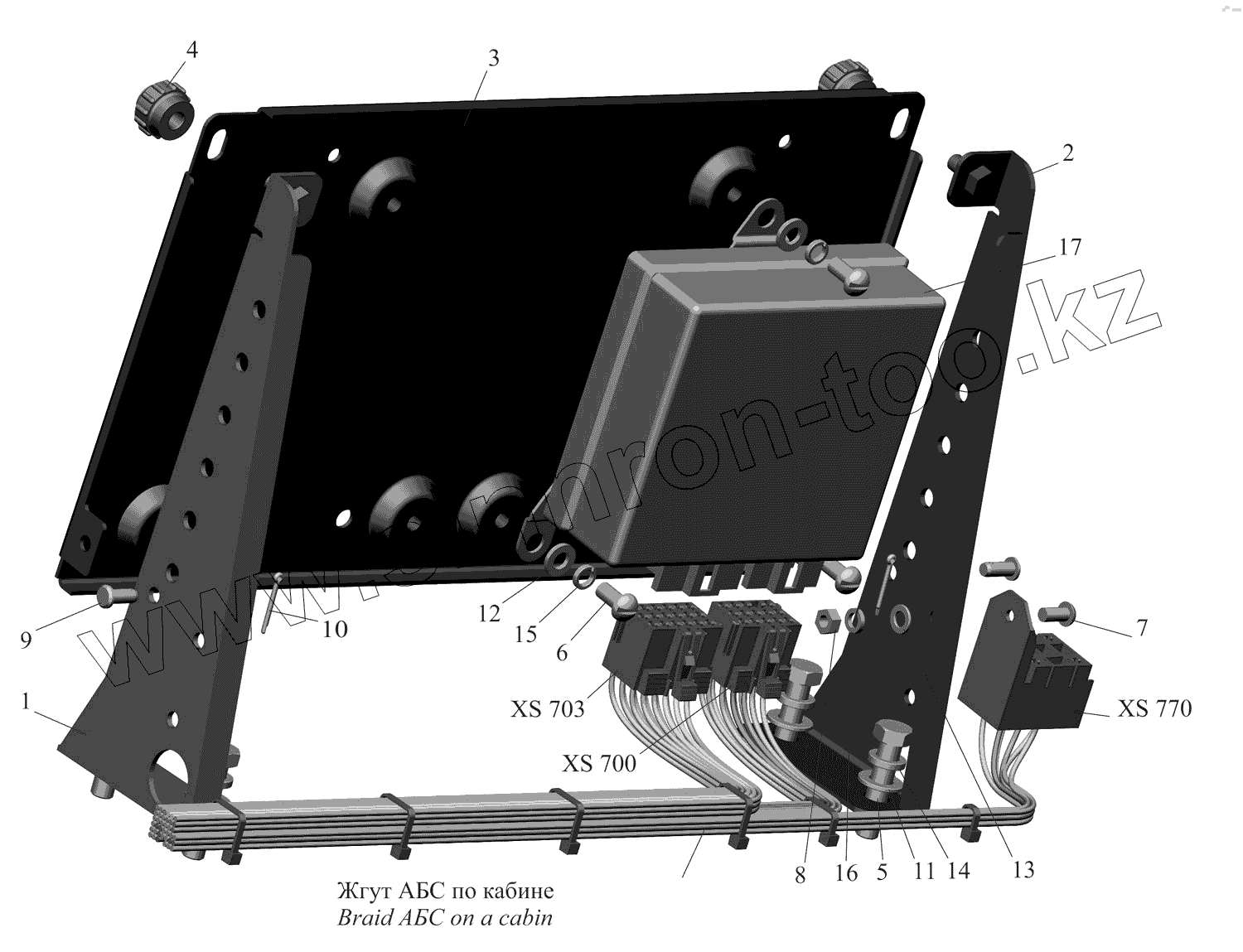 Каталог запасных частей к технике: МАЗ-437130 (Зубренок). Установка электронного блока АБС