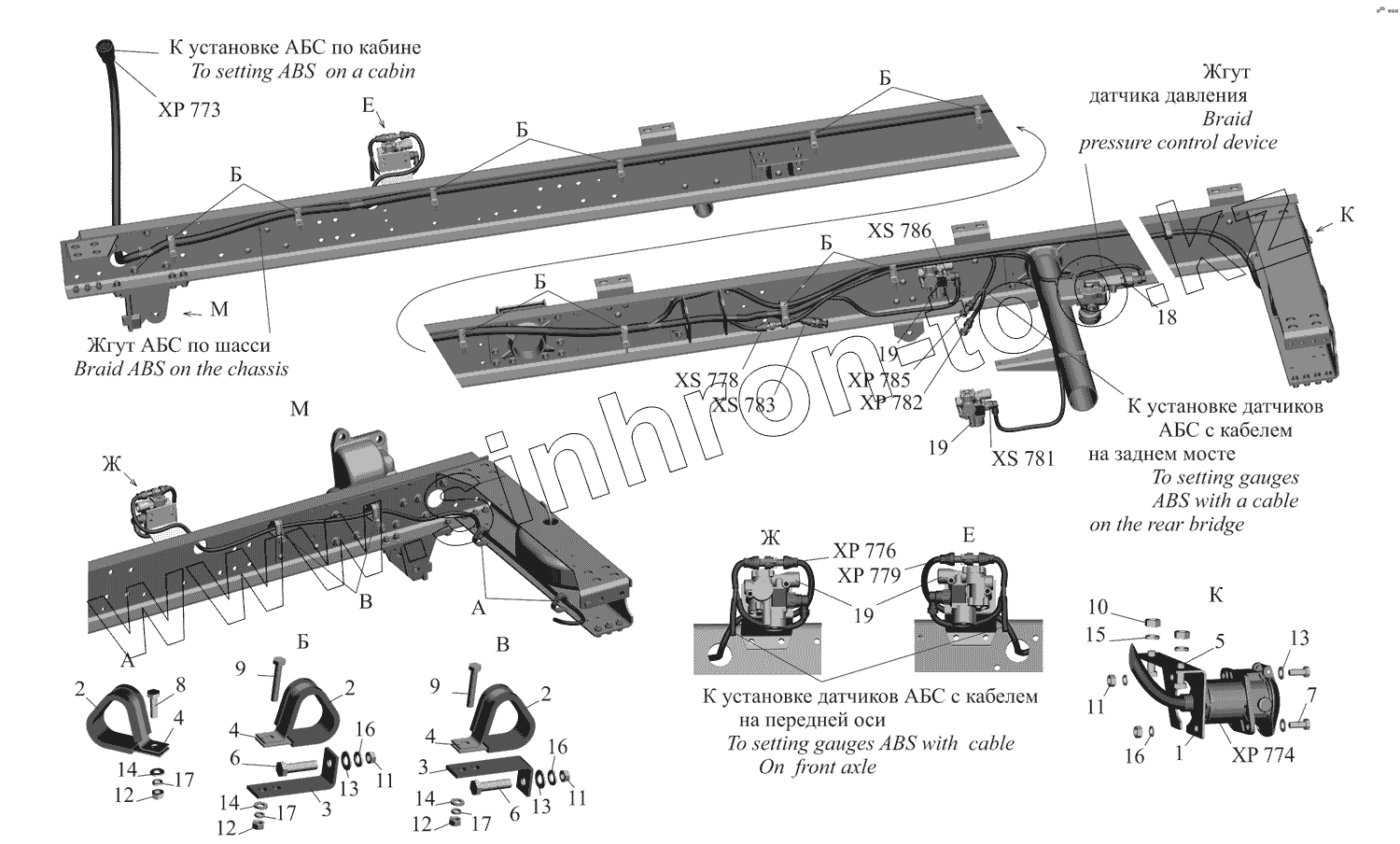 Каталог запасных частей к технике: МАЗ-437130 (Зубренок). Установка электрооборудования АБС 437137-3800040