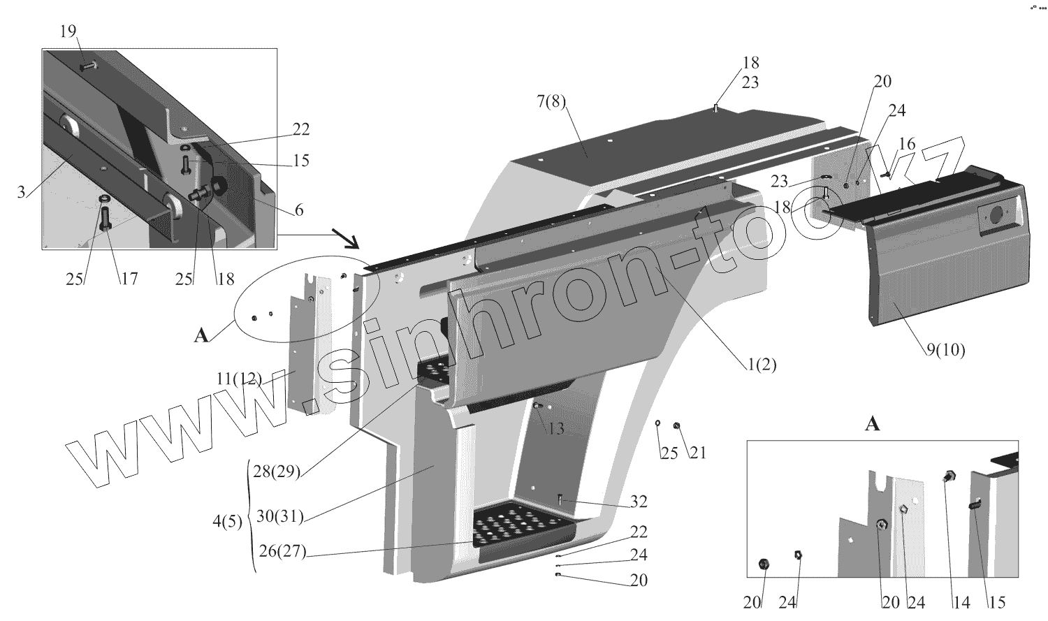 Каталог запасных частей к технике: МАЗ-437130 (Зубренок). Установка оперения 4371-8400020-010