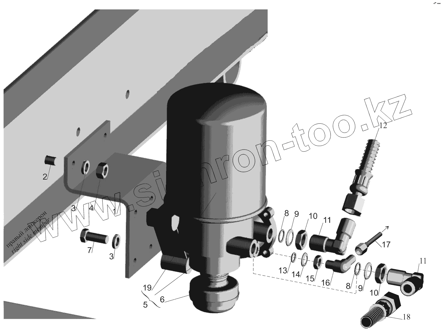 Каталог запасных частей к технике: МАЗ-437130 (Зубренок). Установка осушителя воздуха 5551-3536004