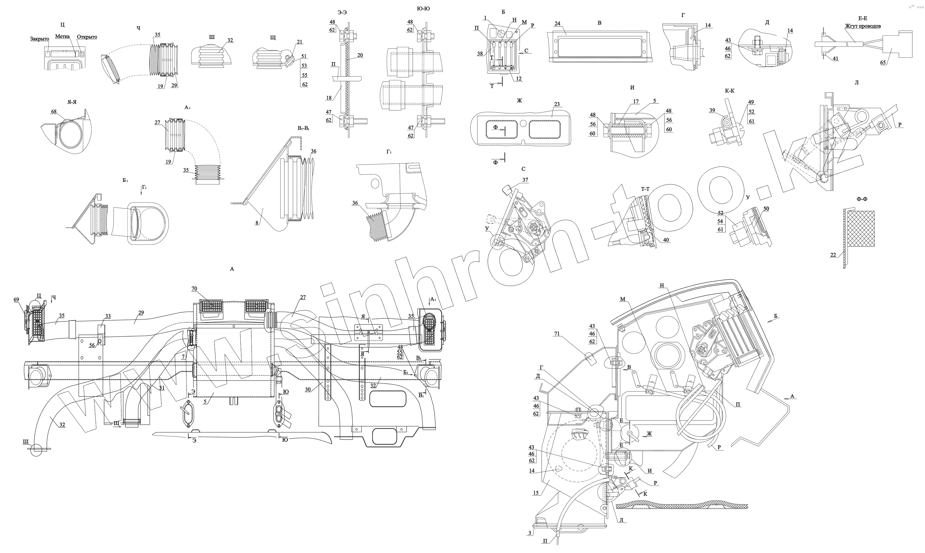 Каталог запасных частей к технике: МАЗ-437130 (Зубренок). Установка отопителя 5440-8100001