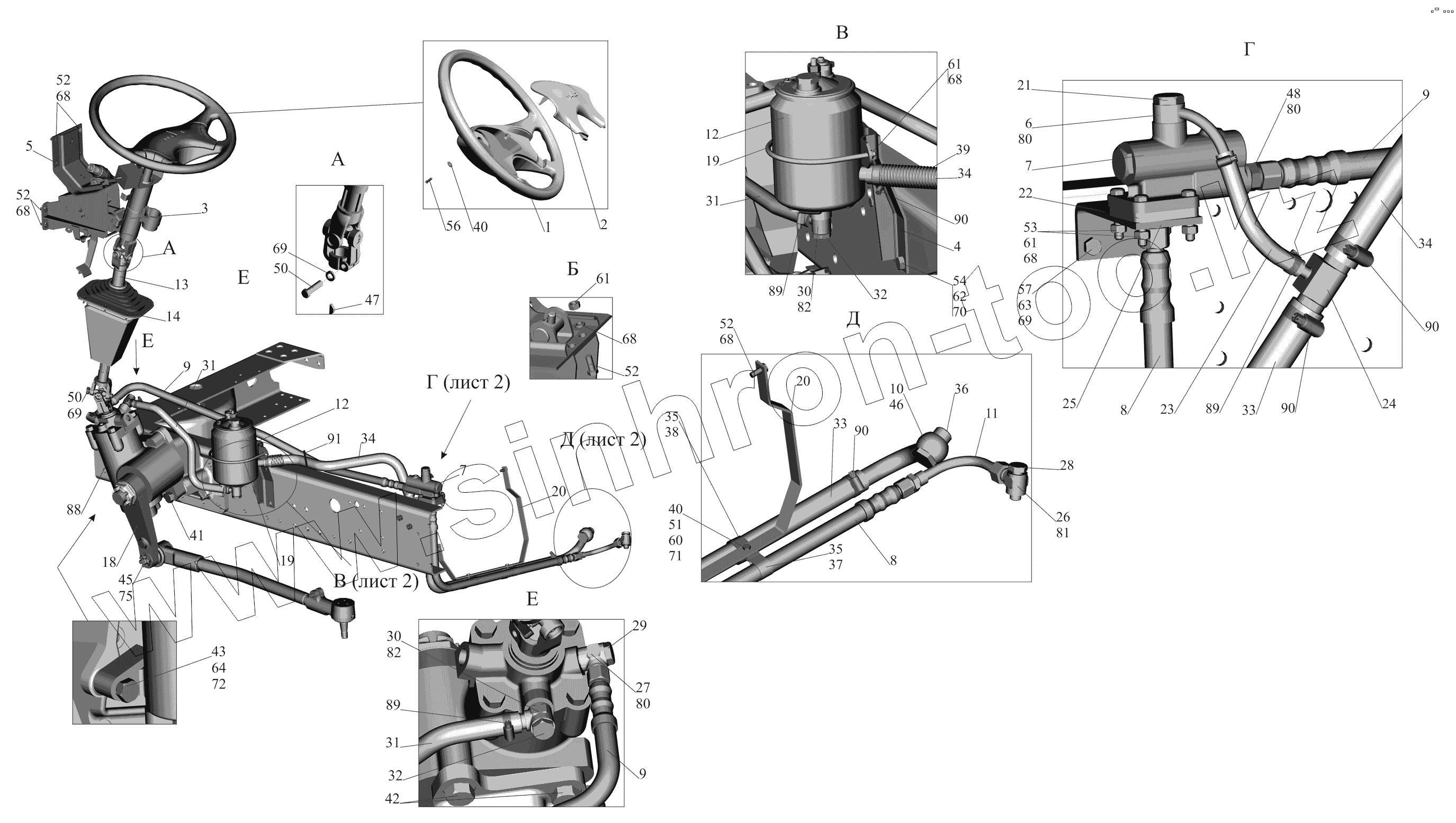 Каталог запасных частей к технике: МАЗ-437130 (Зубренок). Установка рулевого управления 437130-3400001-020