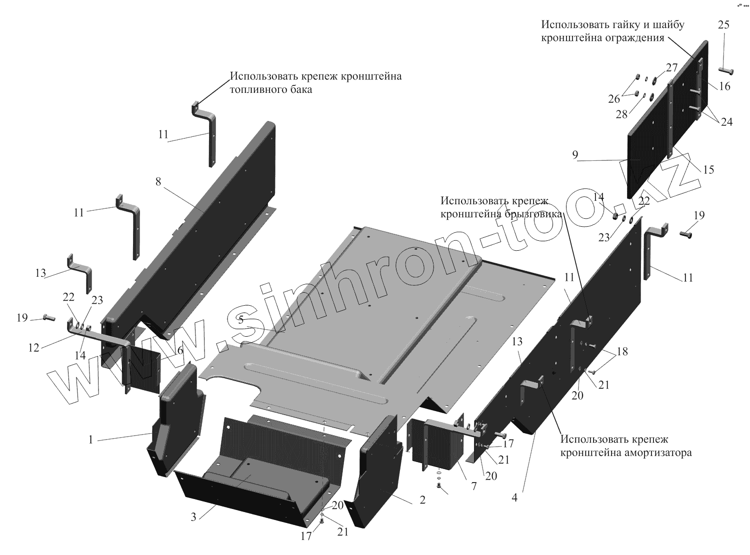 Каталог запасных частей к технике: МАЗ-437130 (Зубренок). Установка шумоизоляционных экранов 437030-1061004